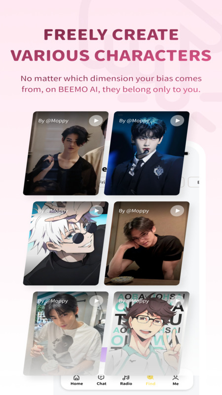 Conecte-se e interaja com personagens virtuais no APK Bimobimo. Vença a solidão e expresse sua criatividade. Desfrute da sensação de ser realmente ouvido agora!
